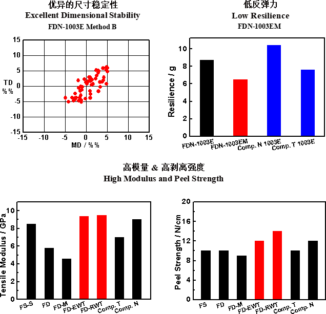 福斯特?zé)o膠型雙面板,采用自主研發(fā)的熱固性聚酰亞胺、熱塑性聚酰亞胺作為絕緣材料,經(jīng)過(guò)一定的疊構(gòu)設(shè)計(jì)生產(chǎn)得到。產(chǎn)品具有高剝離強(qiáng)度和高拉伸強(qiáng)度,優(yōu)異的尺寸穩(wěn)定性和良好的耐熱性,可用于制造高性能單面板和多層板。根據(jù)客戶端不同的應(yīng)用需求與應(yīng)用場(chǎng)景,設(shè)計(jì)了具有不同特性的產(chǎn)品系列。