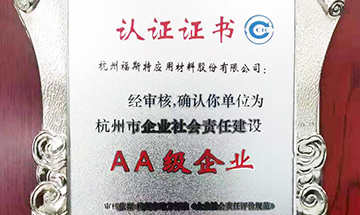 福斯特通過杭州市企業(yè)社會責(zé)任建設(shè)AA級企業(yè)認定 [2019-11-03][2019-11-03]日前,根據(jù)杭州市企業(yè)社會責(zé)任建設(shè)暨發(fā)展和諧勞動關(guān)系工作領(lǐng)導(dǎo)小組發(fā)布的《關(guān)于認定杭州市企業(yè)社會責(zé)任建設(shè)暨發(fā)展和諧勞動關(guān)系先進單位的通報》,認定37家企業(yè)為“杭州市企業(yè)社會責(zé)任建設(shè)AA級企業(yè)”》,福斯特名列其中獲此殊榮。[查看詳情]