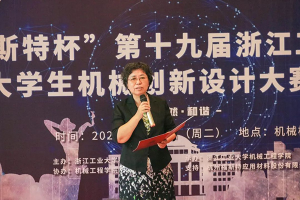 首先,虞曉芬校長上臺致辭。她指出大學(xué)生機(jī)械創(chuàng)新設(shè)計(jì)大賽有利于加強(qiáng)教育與產(chǎn)業(yè)之間的聯(lián)系,將推進(jìn)科學(xué)技術(shù)轉(zhuǎn)化為生產(chǎn)力。她希望更多青年學(xué)生積極投身我國機(jī)械設(shè)計(jì)與制造事業(yè)中,在我國從制造大國走向制造強(qiáng)國的進(jìn)程中發(fā)揮積極的作用。