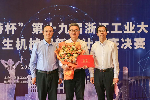 接著,董事長林建華受邀致辭,首先他對本次競賽以“福斯特杯”冠名表達(dá)了感謝。他強(qiáng)調(diào),本次競賽旨在培養(yǎng)學(xué)生的綜合設(shè)計(jì)能力與創(chuàng)新精神,是校企產(chǎn)學(xué)研相結(jié)合的重要部署,有利于創(chuàng)新型人才的挖掘與培養(yǎng)。他鼓勵工大學(xué)子提高創(chuàng)新思維,積極培養(yǎng)動手實(shí)踐能力,結(jié)合企業(yè)需求進(jìn)行機(jī)械設(shè)計(jì)和工藝制造,為我國機(jī)械設(shè)計(jì)和制造事業(yè)貢獻(xiàn)青年力量。院長姚建華為林董頒發(fā)了浙江工業(yè)大學(xué)機(jī)械工程學(xué)院客座教授聘書。