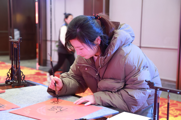 晚上,福斯特“崢嶸歷程三十載,同心同德創(chuàng)未來(lái)”三十周年慶典正式拉開帷幕。員工在場(chǎng)外互動(dòng)區(qū)域集章打卡,參與寫福字、投壺、制作明信片等小游戲,玩得不亦樂(lè)乎,共同分享喜悅與歡樂(lè)。