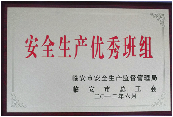 榮獲2012年度“安全生產(chǎn)優(yōu)秀班組”稱號(hào)