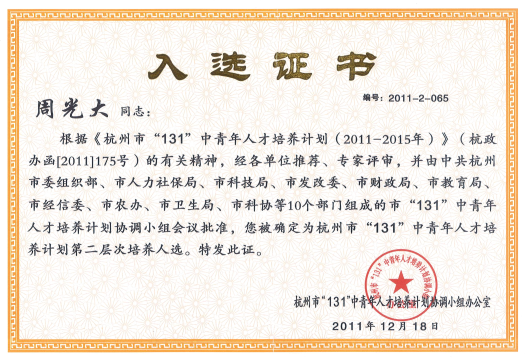 福斯特 技術(shù)總監(jiān)周光大博士入選杭州市“131”中青年人才培養(yǎng)計(jì)劃