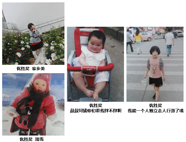 本次活動共收集到31幅作品參賽,作品有展現(xiàn)孩子盟意盎然的睡姿,有展現(xiàn)孩子淘氣喜人的表情,有展現(xiàn)孩子時尚新潮的非凡個性,還有展現(xiàn)懂事孝順、清新脫俗的真善美……父母們用相機給我們可愛的寶寶們記錄下了最型最美的瞬間?;顒咏?jīng)過現(xiàn)場展覽大眾投票環(huán)節(jié)及評審小組評選,最終選出了一、二、三等獎及優(yōu)勝獎共10名作品。