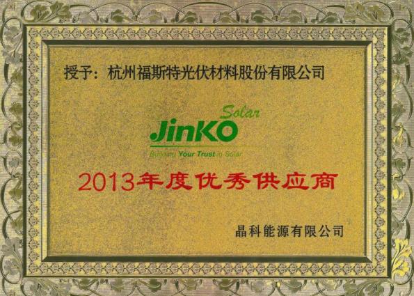 熱烈祝賀福斯特被晶科能源有限公司評(píng)為“2013年度優(yōu)秀供應(yīng)商”。