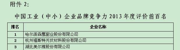 福斯特被評(píng)為“中國(guó)工業(yè)(中?。┢髽I(yè)品牌競(jìng)爭(zhēng)力2013年度評(píng)價(jià)前百名”第二名