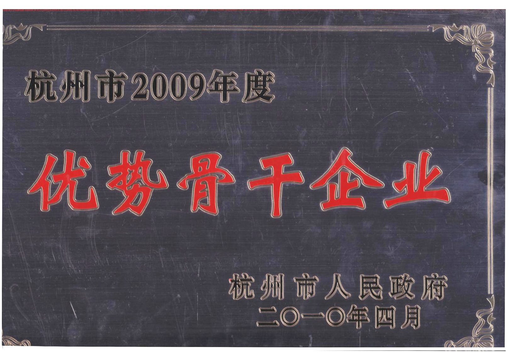 熱烈祝賀公司被評為杭州市科技創(chuàng)新十佳高新技術(shù)企業(yè)和杭州市2009年度優(yōu)勢骨干企業(yè)