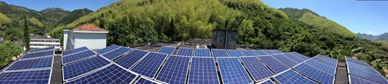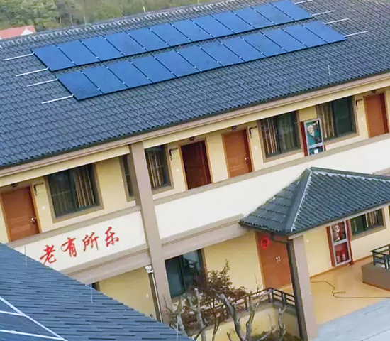 臨安板橋鎮(zhèn)敬老院背靠大山,周圍綠樹(shù)掩映,里面住著40多位老人。只見(jiàn)二層小樓的黑色瓦片屋頂上,分別整齊排列著兩排藍(lán)色太陽(yáng)能板,在陽(yáng)光的照射下分外好看。除此之外,位于太陽(yáng)鎮(zhèn)、龍崗鎮(zhèn)、清涼峰的三家敬老院的光伏發(fā)電系統(tǒng)也已安裝完成,其中板橋鎮(zhèn)、太陽(yáng)鎮(zhèn)已并網(wǎng)成功。每家敬老院的光伏發(fā)電系統(tǒng)的裝機(jī)容量均為10千瓦,今后將每年發(fā)電1萬(wàn)度左右,基本可以解決敬老院一年的用電問(wèn)題。福斯特公司捐贈(zèng)了四家臨安敬老院的全部光伏發(fā)電系統(tǒng),并委托協(xié)會(huì)會(huì)員單位杭州歐帆能源科技有限公司建設(shè)實(shí)施。