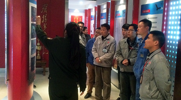 兼職安全員在展示廳認(rèn)真聆聽講解員介紹