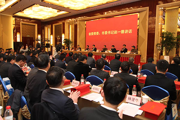1月16日,在市“三會(huì)”2015年度會(huì)員大會(huì)上,浙江省委常委、市委書(shū)記趙一德、省“三會(huì)”會(huì)長(zhǎng)張蔚文等市領(lǐng)導(dǎo)為優(yōu)秀企業(yè)家表彰頒獎(jiǎng)。