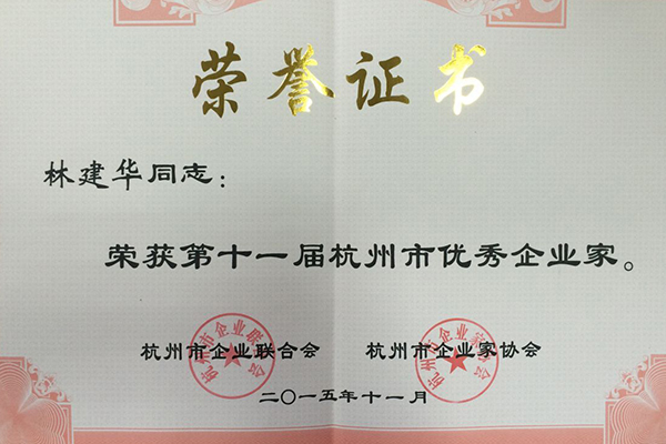 第十一屆杭州市優(yōu)秀企業(yè)家榮譽(yù)證書(shū)