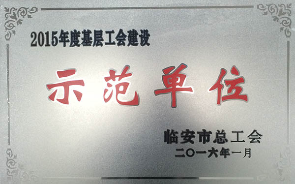 臨安市2015年度基層工會(huì)示范單位榮譽(yù)獎(jiǎng)牌
