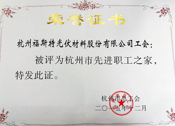 創(chuàng)建基層工會(huì)示范:福斯特榮獲臨安市2015年度基層工會(huì)建設(shè)示范單位等多項(xiàng)殊榮