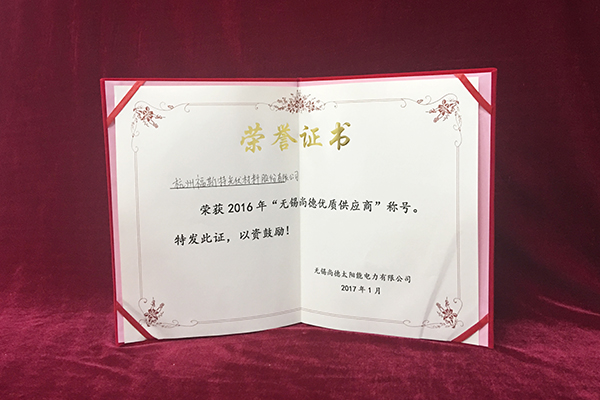 2016年度無錫尚德優(yōu)質(zhì)供應(yīng)商獎(jiǎng)牌