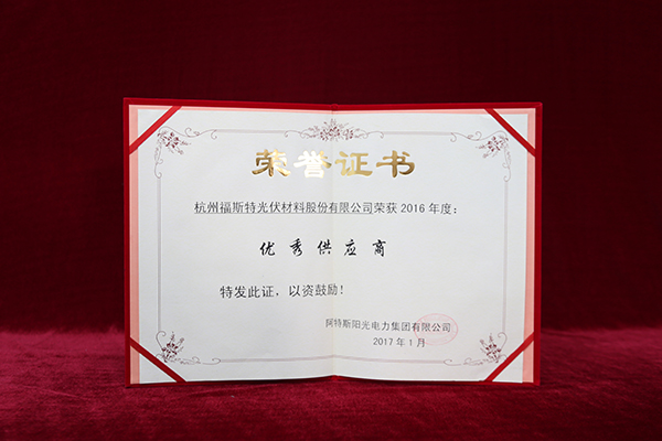 日前,福斯特榮獲阿特斯陽光電力集團(tuán)有限公司頒發(fā)的2016年度“優(yōu)秀供應(yīng)商”獎(jiǎng)。