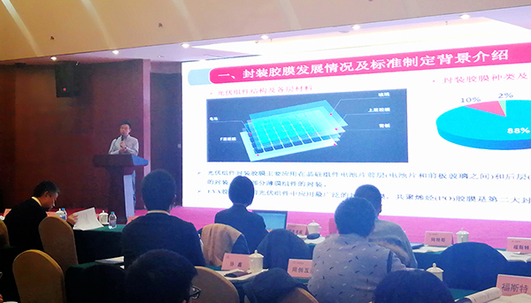 由杭州福斯特應(yīng)用材料股份有限公司作為主編單位的《T/CPIA 0004-2017光伏組件封裝用乙烯-醋酸乙烯酯共聚物(EVA)膠膜》和《T/CPIA 0006-2017光伏組件封裝用共聚烯烴(PO)膠膜》是其中重要兩項(xiàng)。公司副總經(jīng)理周光大博士應(yīng)邀對(duì)兩項(xiàng)標(biāo)準(zhǔn)制定過程、性能指標(biāo)、標(biāo)準(zhǔn)意義進(jìn)行了詳細(xì)解讀。其中,PO膠膜標(biāo)準(zhǔn)填補(bǔ)了全行業(yè)空白,有力扭轉(zhuǎn)了當(dāng)前PO膠膜產(chǎn)品先行而標(biāo)準(zhǔn)缺失的局面;EVA膠膜標(biāo)準(zhǔn)則是在2013版國標(biāo)的基礎(chǔ)上,大幅增加了產(chǎn)品長期可靠性、電性能安全性、白色EVA等產(chǎn)業(yè)前沿內(nèi)容。