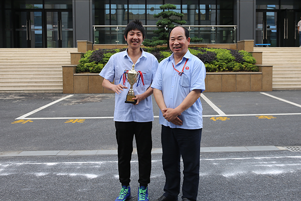 福斯特工會(huì)主席胡偉民為冠軍隊(duì)伍——工會(huì)四組(發(fā)電公司代表隊(duì))頒獎(jiǎng)
