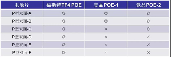 表1.POE封裝不同P型雙面雙玻組件PID192h的背面功率衰減結(jié)果