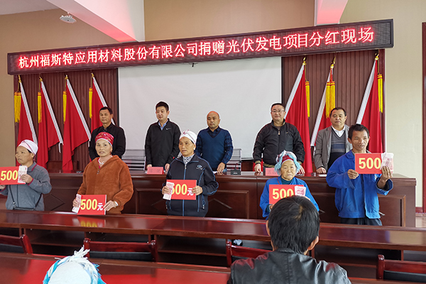 10月29日,由杭州福斯特應(yīng)用材料股份有限公司捐贈的光伏發(fā)電項(xiàng)目1.3萬元分紅資金順利發(fā)放到貴州施秉縣小河村14戶、九龍村12戶貧困戶手中。光伏發(fā)電帶來的經(jīng)濟(jì)效益和生態(tài)效益讓貧困地區(qū)人們得到了更多的喜悅感和獲得感。