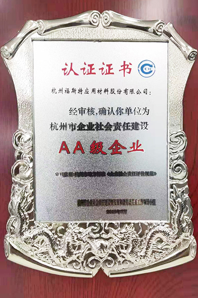福斯特通過杭州市企業(yè)社會責(zé)任建設(shè)AA級企業(yè)認(rèn)定