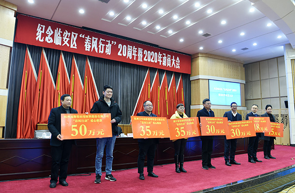 2020年1月13日下午,紀念臨安區(qū)“春風行動”20周年暨2020年動員大會召開。福斯特現(xiàn)場捐款50萬元,并榮獲“春風行動愛心企業(yè)”的榮譽。